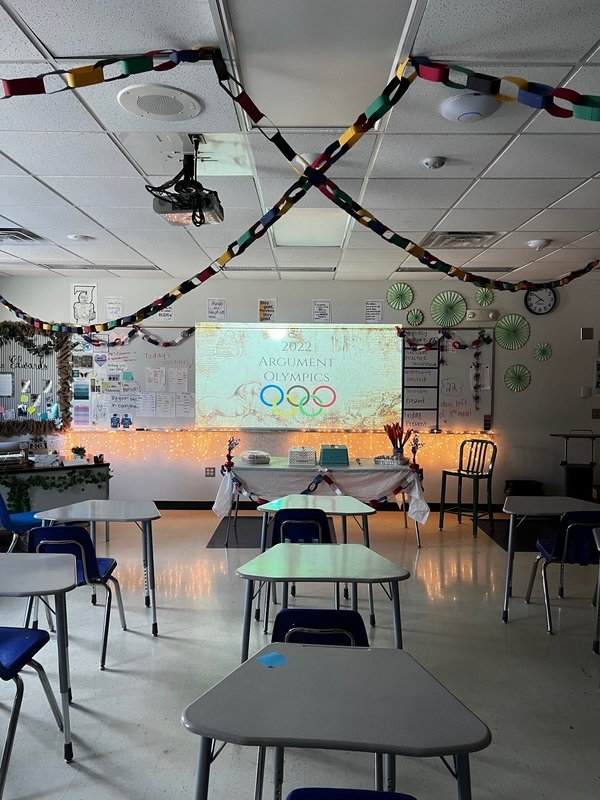 Closing Ceremonies for Ms. Edwards’s 8th-grade Argument Olympics started today, April 27th, 2022! Student presentations have begun, and the competition is fierce!