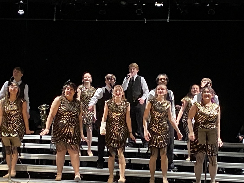 Following the Junior High performance the High School Show Choir and Show Band, Voices Unlimited took the stage for their last performance of the season. Their 2023 Gatsby themed show was amazing! Combining dancing and beautiful costumes with their on point singing they wowed the audience resulting in loud cheers and a standing ovation at the end of their performance.