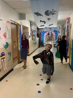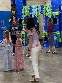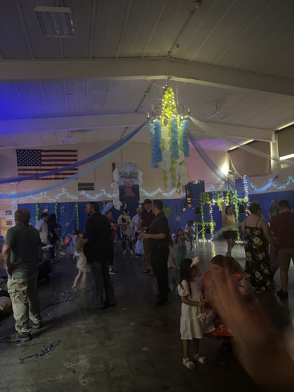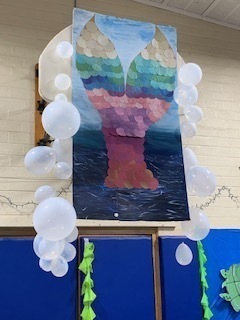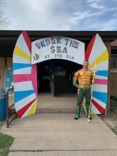 On Friday, April 14th preschool - 2nd grade students were invited to attend the Under the Sea at the ELC dance! Tickets were $10.00 each and covered one student and one special adult guest. It was a magical night! The front entrance and yard were decorated with a lighthouse, waves, a giant octopus, a boardwalk (with a pelican), and colorful fins around the entrance doors.