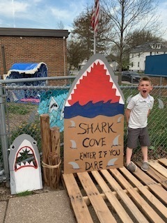 Students who dared to enter Shark Cove (the fenced in garden in front of the ELC) were able to pose for pictures on a surf board inside of a giant wave after making their way past all of the sharks swimming in the grass.