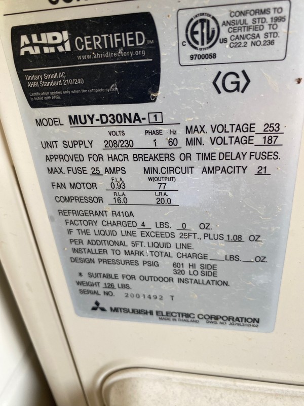- Mitsubishi Electric, Model MUY-D30NA