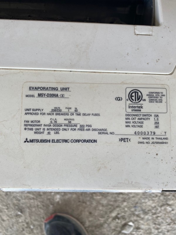 The photos below show the specs on voltages and Freon pressures needed for both units. For more information or to schedule a pickup please email or call Jeremiah Smith at jeremiahsmith@wl.k12.ia.us , Cell 319-530-1267.