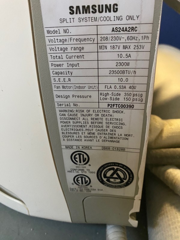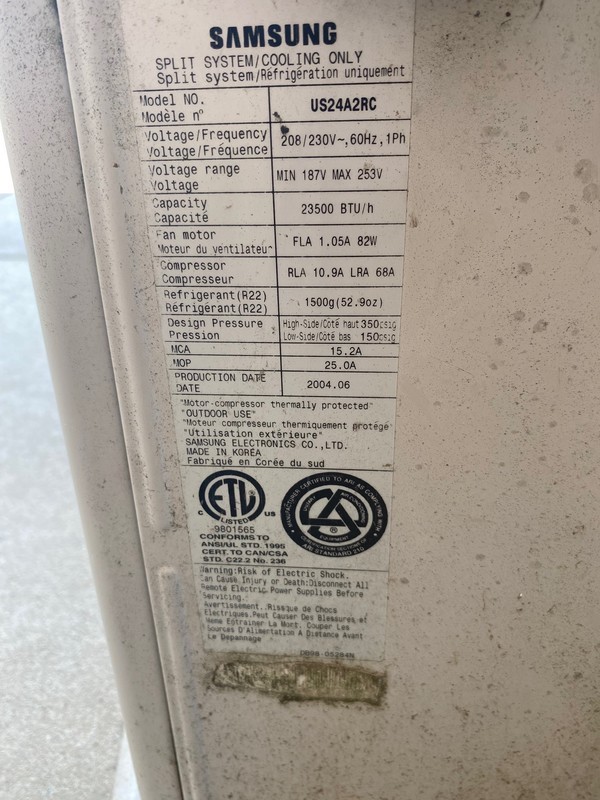 - Samsung units, Model US24A2RC