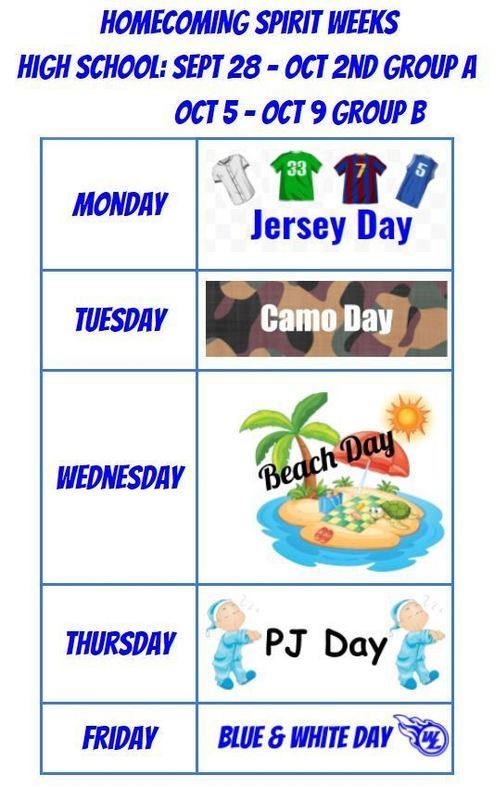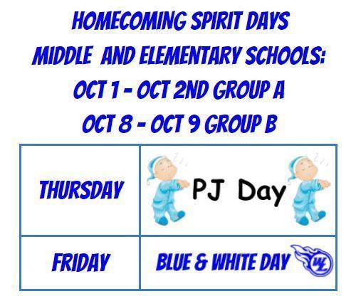 West Liberty Middle and Elementary Schools Spirit Days will be October 1st and 2nd for Group A students and October 8th and 9th for Group B students! Go Comets!