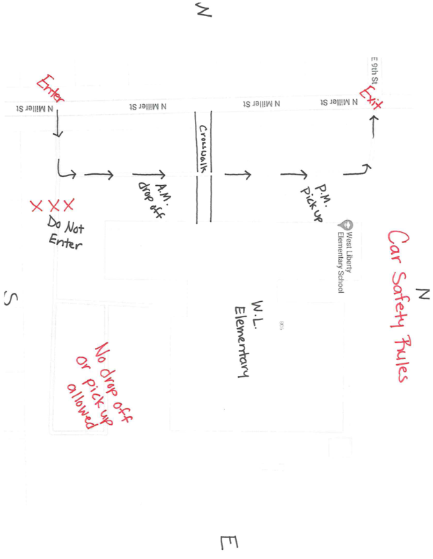 We are sharing our drop off and pick up locations for the Elementary. Cars may only drop off or pick up on Miller street, or pull into the front parking lot and drop off or pick up in the front. We want to keep all vehicles in the front of the building; as we have students in the back before and after school. We appreciate everyone helping to keep our students safe!
