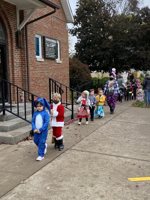 ELC students didn’t let the chill in the air or the mist in the air get in the way of their Halloween parade on Friday, October 29th! Students were able to show off their Halloween costumes to family and friends as they walked around the block wishing everyone “Happy Halloween!”