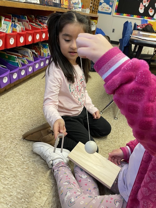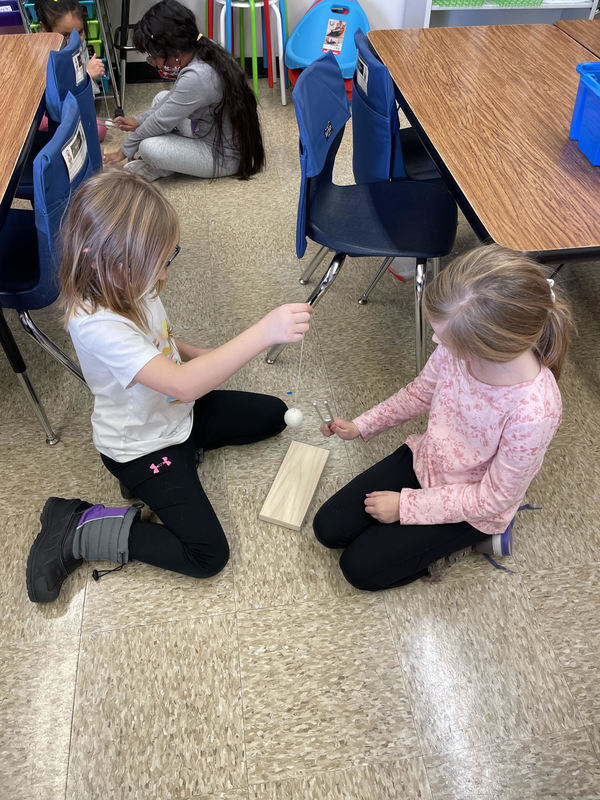 Our 1st-grade Comets have been working on their Sound and Light science unit. In the lesson pictured below, they learned about how vibrations cause sound. When striking tuning forks they could not see the fork vibrate, but when they touched it to a ping pong ball it caused the ball to move!
